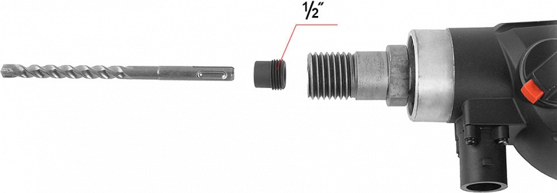 Адаптер для буров Messer 1/2" папа-SDS plus (Мессер 1/2" папа-СДС плюс) предназначен для сверления отверстий буром с помощью дрели или установки алмазного бурения без использования дрели электрической ручной или перфоратора, например, для бурения отверстий под анкера для крепления опорной плиты станины установки алмазного бурения.