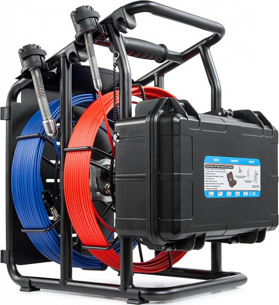 Проталкиваемая система видеоинспекции канализации Rotorica 3499F-Dual-40 (Роторика 3499Ф-Дуал-40) с камерами CMOS, Ø 18 × 135 мм, широким углом обзора 82° и Ø 23 × 155 мм, широким углом обзора 120°, разрешением формата Full HD 1080P AHD (1920 × 1080), записью видео и аудио, встроенными счетчиками расстояния и катушками с кабелями Ø 4,8 мм × 40 м и Ø 5,2 мм × 40 м предназначена для осмотра внутренних трубопроводов, канализации и сливов, а также для инспекции каналов, дымоходов, воздуховодов в производствах и домах.