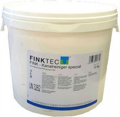 Средство для прочистки канализационных труб Finktec FINK-Kanalreiniger Spezial (Финктек ФИНК-Каналрейнигер Специаль) – сильный гранулированный щелочной очиститель для канализационных стоков, состоящий из щелочи и поверхностно-активных веществ (ПАВ), для эффективной промывки сточных систем на мясоперерабатывающих предприятиях, промышленных кухнях, на предприятиях общественного питания, также для использования в домашнем хозяйстве. Отложения жира, белка и прочих загрязнений различного вида полностью растворяются в водных стоках, сифонах и ливнеспусках, обеспечивается беспрепятственный свободный проток. Наибольший эффект от применения средства достигается при совместном использовании с электромеханическими прочистными машинами.